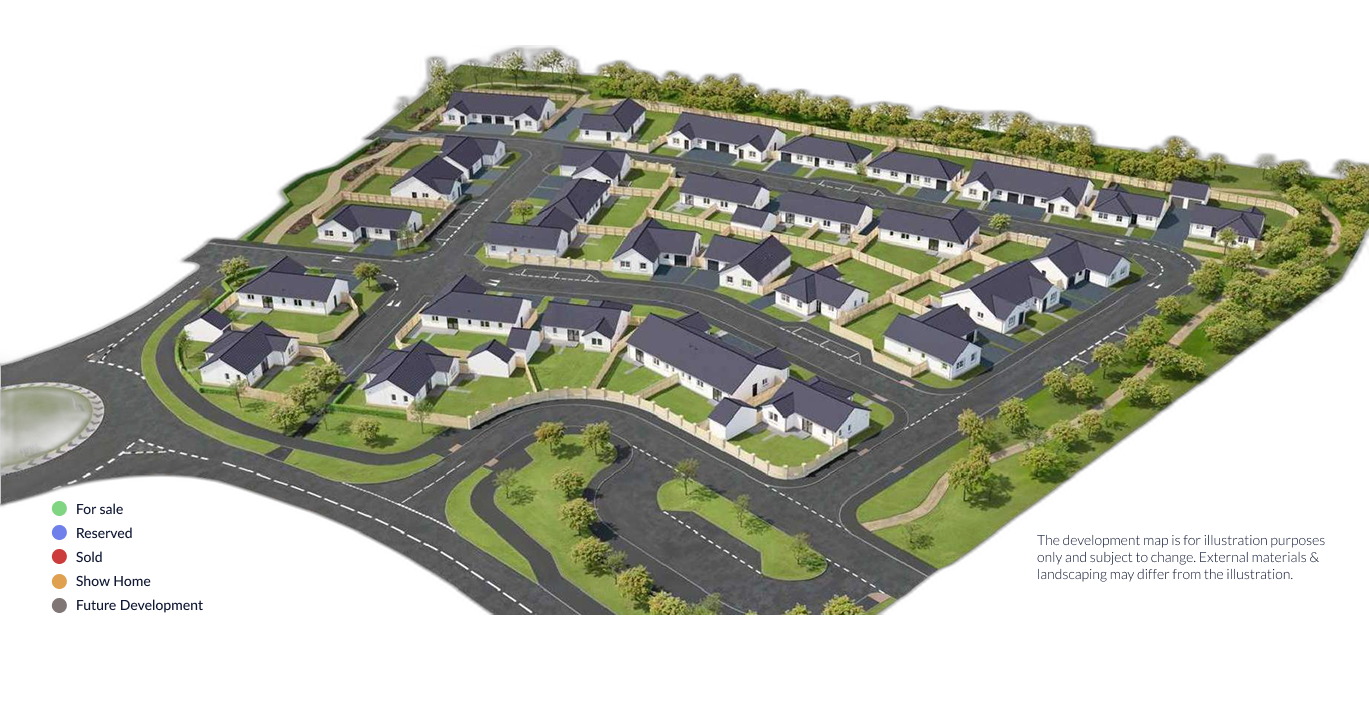Welcome to Southfields, an exclusive development of 2 and 3-bedroom detached and semi-detached bungalows. Thoughtfully laid out to give you space while still feeling part of a community, Southfields is surrounded by beautiful rural scenery that enhances everyday living. Inspired by traditional Scottish architecture, each home blends timeless charm with modern design, featuring sash-style windows, slate grey tiles, sharp rendering, and simple roof lines that sit harmoniously within the landscape. By reimagining the character of a classic Scottish cottage for the 21st century, Southfields offers homes that are both distinctive and practical—making it the perfect place to put down roots.